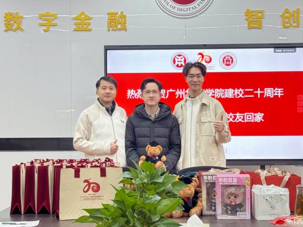 时光荏苒,岁月如歌 恰逢广州华商学院建校二十周年校庆之际,为凝聚校友力量,共话母校发展,2025年12月26日,广州华商学院数字金融学院校友座谈会隆重举行。学院领导班子、系主任、辅导员等老师与校友、学生代表欢聚一堂,共忆青春岁月,共叙师生情谊,共话学院发展。 领导致辞,温暖回家路 座谈会伊始,数字金融学院张纯威院长发表热情洋溢的致辞。院长首先代表学院全体师生对各位校友在百忙之中“回家”表示最热烈的欢迎和最诚挚的感谢。学院领导班子表示,校友是学院最宝贵的财富,是学院发展最坚实的后盾,希望通过此次座谈会,搭建起校友与母校、校友与校友之间沟通交流的桥梁,期待校友们常回家看看,继续关心支持学院的发展,与母校携手共筑美好未来。 欢声笑语,校友话当年 随后,校友们依次自我介绍,分享了自己在校期间的难忘经历与毕业后的奋斗历程、工作感悟与人生收获。从初入职场的懵懂探索,到如今在金融行业、数字经济领域等各自岗位上的独当一面,校友们的分享朴实而真挚,既有对过往校园时光的深情追忆,也有对行业发展趋势的深刻洞察。 师生情浓,薪火相传 在交流互动环节,校友们与在校生代表进行了热烈而深入的交流。面对学弟学妹们关于职业规划、实习就业等方面的困惑,校友们耐心解答,倾囊相授。他们结合自身经历,鼓励学弟学妹们要珍惜在校时光,夯实专业基础,勇于实践创新,树立正确的人生观和价值观。老师们也寄语同学们要以优秀校友为榜样,传承华商精神,努力成为有理想、有本领、有担当的时代新人。现场气氛温馨融洽,浓浓的师生情、同窗情洋溢在整个会场。 漫步校园,重温青春岁月 座谈会结束后,学院领导带领校友们一同漫步校园,重温青春岁月。从熟悉的教学楼、图书馆,到崭新的国际会展中心、运动场馆,校友们边走边看,不时驻足拍照留念,深切感受着母校二十年来的巨大变化与蓬勃发展。每一处景致都承载着难忘的青春记忆,每一个变化都让校友们为母校的发展成就感到骄傲与自豪。大家一路畅谈,仿佛又回到了当年的校园时光,欢声笑语洒满校园的每一个角落。 盛世欢歌,共庆华诞 夜幕降临,璀璨的灯光点亮校园。校友们与学院师生一同前往校庆晚会现场,共同观看这场精彩纷呈的文化盛宴。晚会现场流光溢彩,节目精彩纷呈,展现了华商师生昂扬向上的精神风貌。当熟悉的旋律响起,当看到母校辉煌的成就展示在屏幕上,校友们心潮澎湃,股掌欢呼。这一刻,大家的心与母校紧紧相连,共同为华商二十岁生日送上最真挚的祝福。 此次校友返校接待和校友座谈会的圆满举行,不仅为校友们搭建了重温旧梦、共叙情谊的平台,也为学院与校友之间搭建了深度沟通的桥梁,更为在校生们提供了学习借鉴、明确方向的宝贵机会。廿载华商,弦歌不辍;数金情深,共赴未来。让我们同心同德,携手共进,共同书写广州华商学院数字金融学院更加灿烂辉煌的明天!